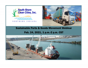 February 24, 2021, 1 p.m.-2 pm. CST - Sustainable Ports & Goods Movement Webinar Join Drive Clean Indiana for the Sustainable Ports & Goods Movement Webinar! Hear about a variety