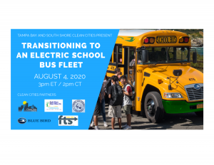 August 4, 2020, 2 p.m. CDT - Webinar: Transitioning to an Electric School Bus Fleet Tampa Bay Clean Cities and Drive Clean Indiana are partnering with Blue Bird Corporation and